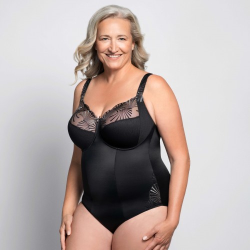 Ulla Dessous Emily corrigerende body met beugel, brede comfortabele bandjes, stevig model. Verkrijgbaar in het zwart en ecru afgewerkt met mooi kant.